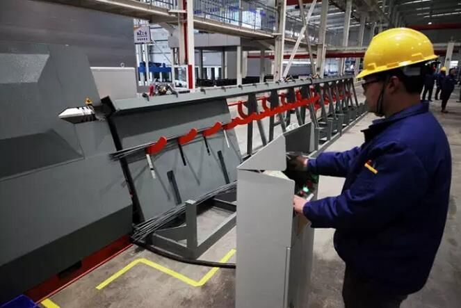 在基地生產(chǎn)現(xiàn)場(chǎng)看到,先進(jìn)的PC生產(chǎn)流水線、全自動(dòng)智能鋼筋加工線、智能混凝土攪拌站在緊張有序地工作著,焊接機(jī)器人、彎箍機(jī)器人、鋼筋柔性調(diào)直機(jī)器人等全自動(dòng)智能鋼筋加工設(shè)備舞動(dòng)著靈巧的長(zhǎng)袖……目前,100余件電纜溝蓋板已經(jīng)生產(chǎn)并用于公司的基建中,不同數(shù)量的疊合板、陽(yáng)臺(tái)板、樓梯、反打瓷磚墻板、剪力墻板、凸窗外墻板、堆場(chǎng)蓋板等預(yù)制構(gòu)件產(chǎn)品也于2016年年底達(dá)產(chǎn),2017年實(shí)現(xiàn)批量生產(chǎn)。