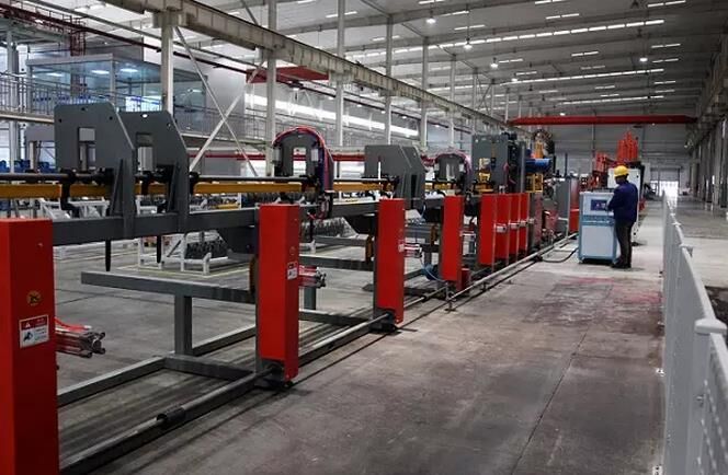 在項(xiàng)目建設(shè)初期,該公司引進(jìn)國(guó)內(nèi)先進(jìn)水平的PC生產(chǎn)流水線、全自動(dòng)智能鋼筋加工線并開發(fā)智能混凝土攪拌站。PC流水線由自動(dòng)清掃、噴油、劃線、邊模安裝、混凝土澆筑、趕平、預(yù)養(yǎng)護(hù)窯、抹光、養(yǎng)護(hù)、翻轉(zhuǎn)、沖洗等自動(dòng)化設(shè)備組成,整個(gè)流水線各操作平臺(tái)由中央控室統(tǒng)一調(diào)度、控制,實(shí)現(xiàn)智能化、自動(dòng)化生產(chǎn);鋼筋加工流水線是由全自動(dòng)智能鋼筋桁架焊接機(jī)器人、全自動(dòng)智能鋼筋彎箍機(jī)器人、全自動(dòng)智能鋼筋柔性調(diào)直機(jī)器人、棒材鋼筋加工中心等鋼筋加工設(shè)備組成,可實(shí)現(xiàn)圖形輸入,數(shù)控加工;公司使用的混凝土攪拌站,是由徐工施維英有限公司設(shè)計(jì)、制造的符合公司生產(chǎn)實(shí)際需要的行業(yè)先進(jìn)裝備,該設(shè)備擁有“一站式雙主機(jī)、立體料倉(cāng)”的特點(diǎn),可生產(chǎn)多品種混凝土,尤其具有同時(shí)生產(chǎn)兩種型號(hào)混凝土的功能。