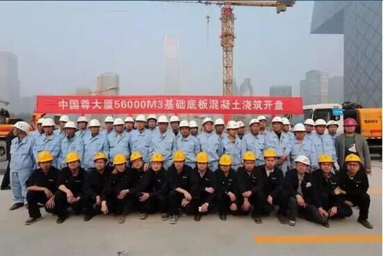 為了保障此次澆筑的順利完成,三一派出了20多名服務(wù)工程師駐守工地,保證每臺(tái)設(shè)備至少有一名服務(wù)工程師進(jìn)行專職服務(wù)。2014年4月27日,在18臺(tái)三一車載泵、20多臺(tái)三一攪拌車的全力保障下,“中國(guó)尊”項(xiàng)目完成了最大底板澆筑,將標(biāo)號(hào)60以上的高粘稠度混凝土一次性泵送到位。這次澆筑持續(xù)了96個(gè)小時(shí),一次性連續(xù)澆筑混凝土總量達(dá)5.6萬(wàn)立方米,在連續(xù)澆筑期間,實(shí)現(xiàn)了零事故、零投訴,澆筑一次成優(yōu),創(chuàng)造了北京建筑業(yè)的新奇跡。