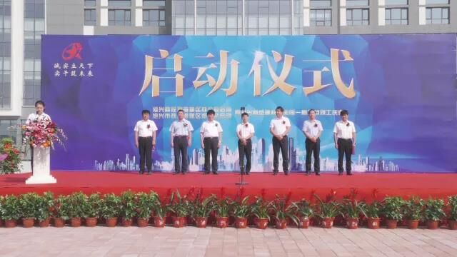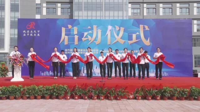 臺(tái)上領(lǐng)導(dǎo)共同為慶典儀式剪彩,將現(xiàn)場氣氛推向高潮。