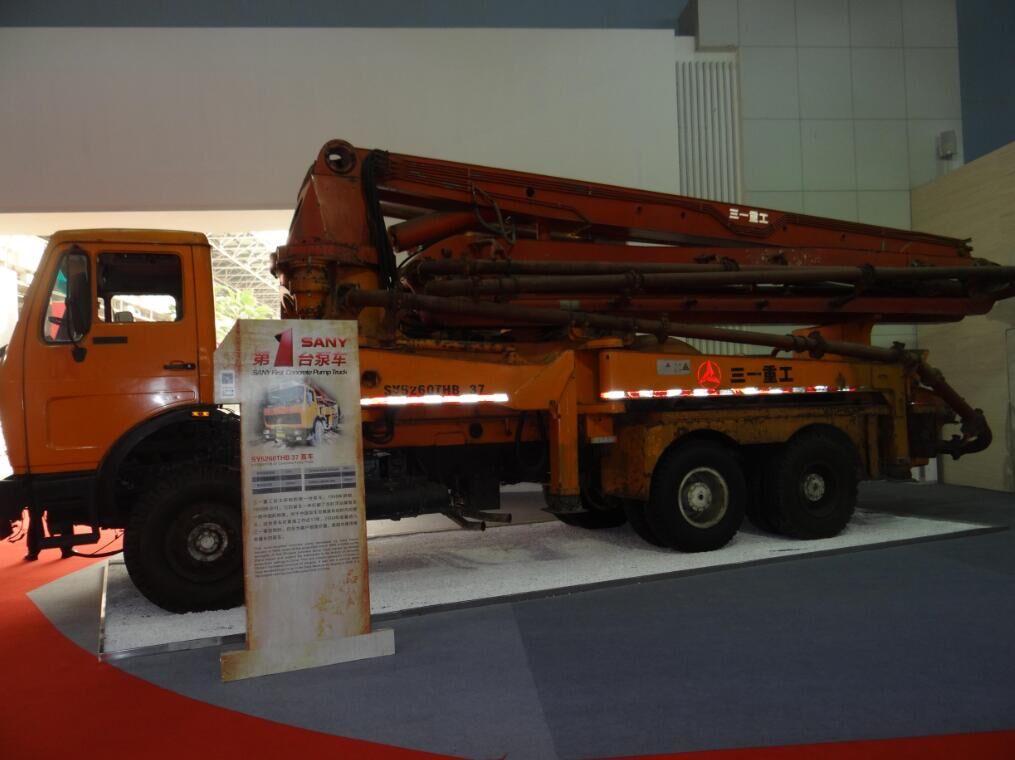 在三一重工的工廠大廳還展示著三一重工自主研發(fā)的第一臺泵車,1998年研制,1999年交付,它的誕生一舉打破了當(dāng)時洋品牌泵車一統(tǒng)中國的局面,對于中國泵車發(fā)展具有劃時代的意義。這臺泵車在青海工作近11年,2009年收藏進(jìn)入三一展館時仍在為客戶創(chuàng)造價值,是國內(nèi)使用壽命最長的泵車。