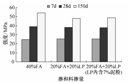 研究發(fā)現(xiàn)分別摻加40%粉煤灰和摻加20%粉煤灰、20%石灰石粉的C30混凝土,7d和28d強(qiáng)度基本相當(dāng),抗碳化性能基本相當(dāng)。石灰石粉中一定的含泥量,對混凝土強(qiáng)度和抗碳化性能影響不大。