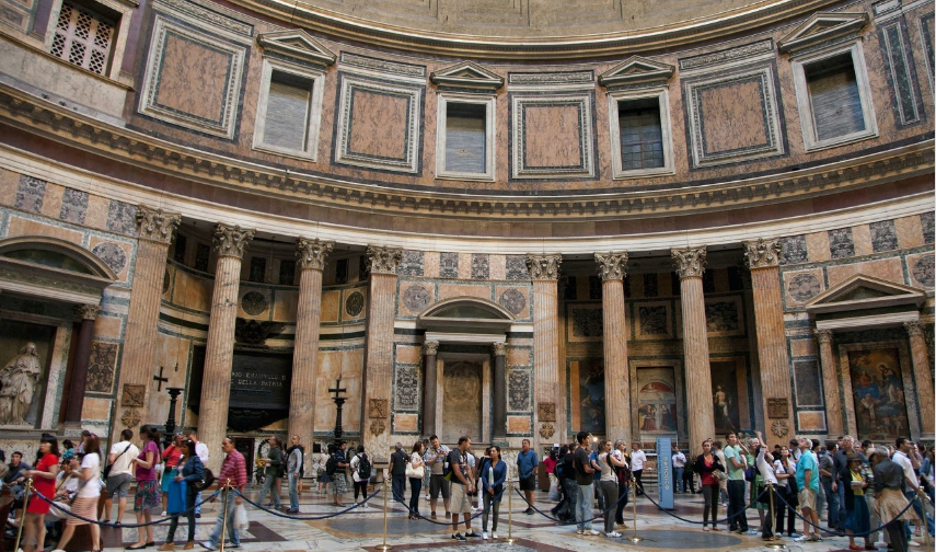 萬神 殿是古羅馬精湛建筑技術(shù)的典范。它是一個(gè)寬度與高度相等的巨大圓柱體,上面覆蓋著半圓形的屋頂。拉斐爾等許多著名藝術(shù)家就葬在這里,葬在這里的還有意大利君主專制時(shí)期的統(tǒng)治者。對(duì)面是羅通達(dá)廣場(chǎng),廣場(chǎng)中央建有美麗的噴泉。萬神殿是眾神所在的神殿,這里見證了歷史的變遷。