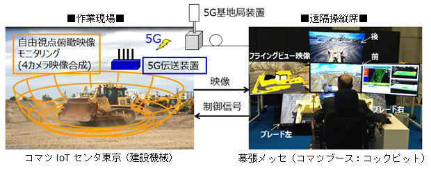 株式會社小松制作所(KOMATSU)正與電訊商NTT DoCoMo聯(lián)合開發(fā)使用“5G”通訊技術,未來可實現(xiàn)遠程操控工程機械施工。2018年的世界移動大會·上海(簡稱“MWC上海”),一個與遠在石家莊的挖掘機相連的駕駛室吸引了人們的眼球,真實呈現(xiàn)了了5G技術“物物相連”的場景。在2018世界智能制造大會上,“現(xiàn)代挖掘機駕駛室長途操控臺”可通過顯示屏實時操控遠在河北工地的挖掘機。據(jù)了解,兩臺設備皆是河北小松在當?shù)厥┕がF(xiàn)場的智能挖掘機,基于5G信號的高寬帶、低時延性能完成實時傳輸。