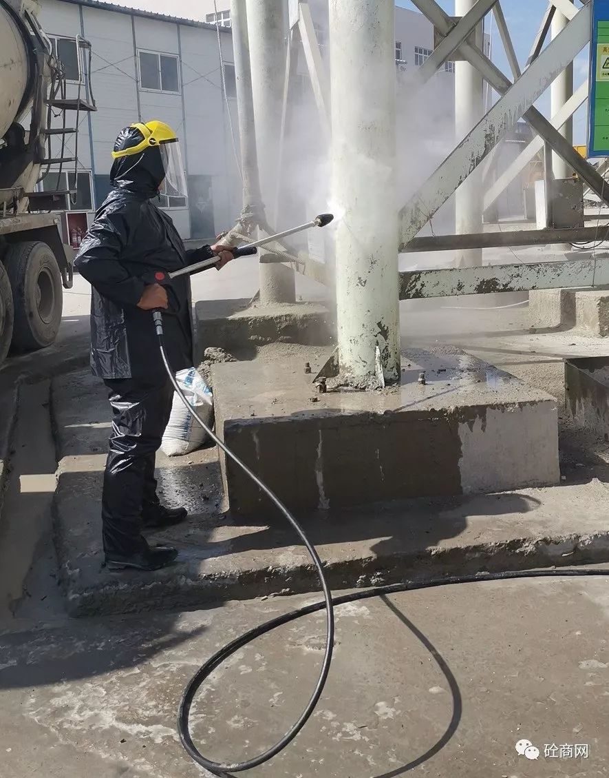 在楊技術(shù)員給站上工作人員進(jìn)行初步講解指導(dǎo)后,首先對(duì)兩年沒(méi)有清理過(guò)的水泥倉(cāng)支腿下方累積的混凝土進(jìn)行了處理。那么,效果究竟怎么樣呢?具體視頻關(guān)注“砼商網(wǎng)”公眾號(hào),回復(fù)“高壓清洗機(jī)”即可獲得技術(shù)員正準(zhǔn)備打攪拌機(jī)主樓容易噴濺混凝土的地方時(shí)該攪拌站站長(zhǎng)說(shuō)道,這可得有兩年沒(méi)清理過(guò)的混凝土結(jié)塊,十幾公分厚呀!你們這高壓清洗機(jī)能打掉嗎?這是混凝土??!這么長(zhǎng)時(shí)間了,還這么厚,打不下去怎么辦?正在小編心里打鼓的時(shí)候,楊技術(shù)員說(shuō)道,沒(méi)問(wèn)題,放心吧!