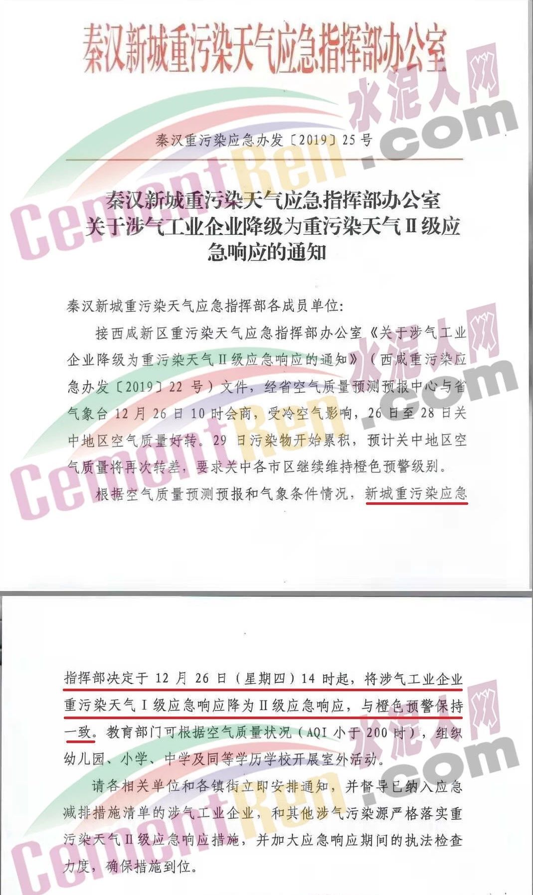 同期,秦漢新城重污染天氣應急指揮部辦公室發(fā)布了《關于涉氣工業(yè)企業(yè)降級為重污染天氣II級應急響應的通知》稱,新城重污染天氣應急指揮部定于12月26日(星期四)14時起,將涉氣工業(yè)企業(yè)重污染天氣I級應急響應降至為II級應急響應。