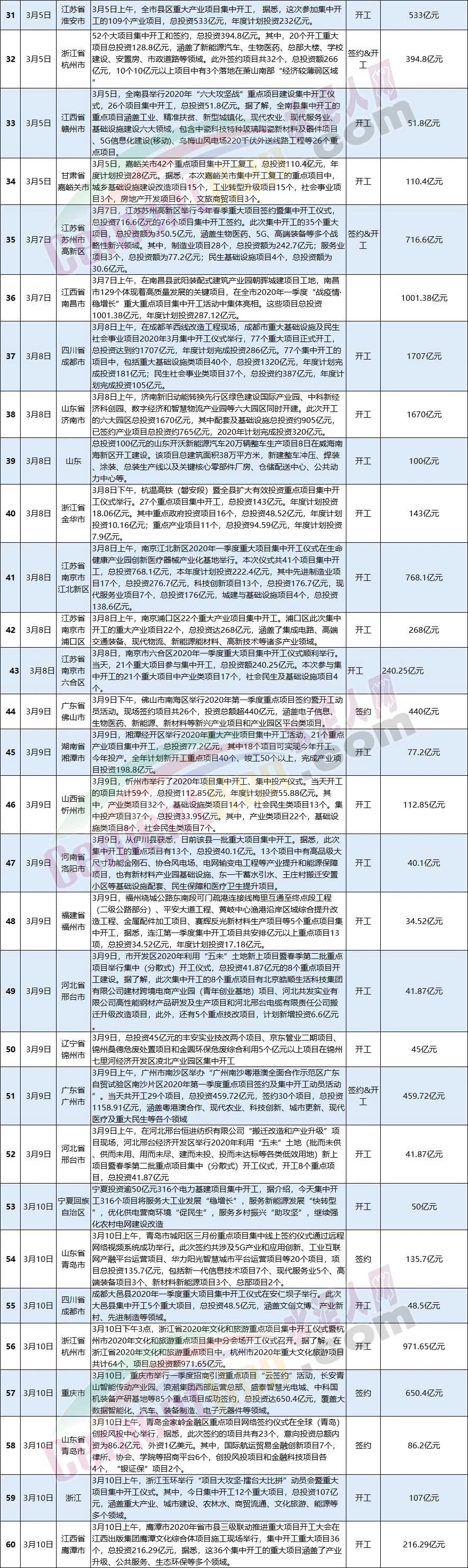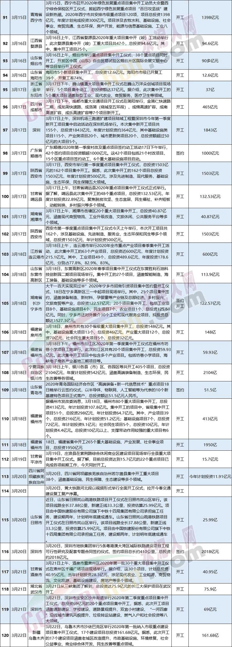 3月全國(guó)新開(kāi)工和簽約項(xiàng)目一覽表