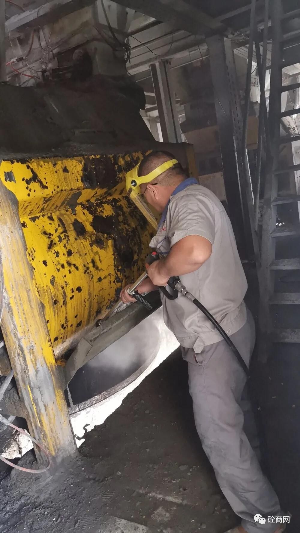 攪拌主機因為每天要反反復復不停的生產(chǎn),就會在大軸及葉片或周邊堆積大量的混凝土結塊,時間長了,就會出現(xiàn)抱軸現(xiàn)象,而抱軸現(xiàn)象一出現(xiàn),就由輔助工進主機進行清理,由于用風鎬這類電動工具清理,在大軸或葉片上就會留下很多的坑坑洼洼,導致抱軸現(xiàn)象會越來越頻繁,越來越嚴重!
