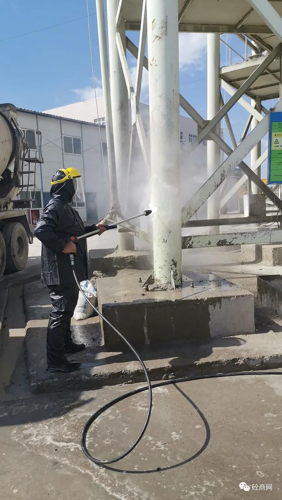 不管是從設備使用維護方面還是更重要的人員生命安全方面,使用新型的清理工具將會避免這些危險的發(fā)生。青島飛天公司研發(fā)的攪拌機專用清理設備——高壓水射流設備就很好的解決了攪拌站這一清洗難題!