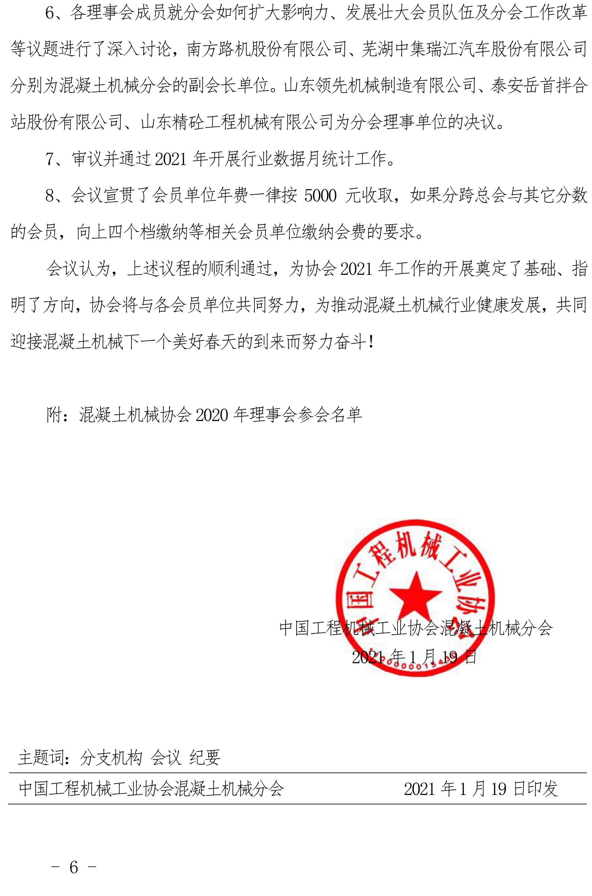 中國工程機(jī)械工業(yè)協(xié)會(huì)混凝土機(jī)械分會(huì) 2020 年理事會(huì)議紀(jì)要