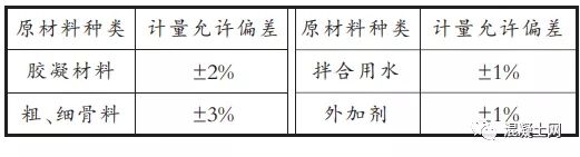 表1 每盤混凝土原材料計(jì)量偏差允許偏差