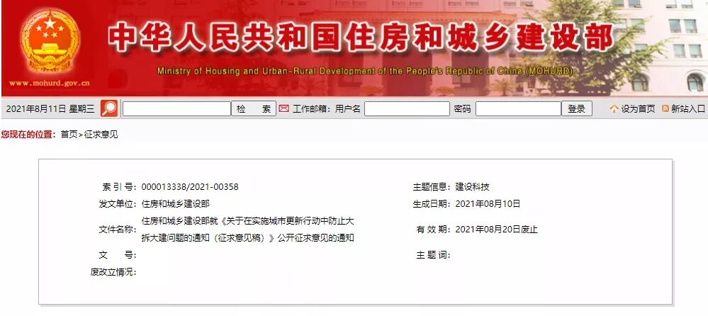 為深入貫徹黨的十九屆五中全會精神和“十四五”規(guī)劃綱要部署要求,指導各地積極穩(wěn)妥實施城市更新行動,防止沿用過度房地產(chǎn)化的開發(fā)建設方式,大拆大建,急功近利等問題,我部研究起草了《關于在實施城市更新行動中防止大拆大建問題的通知》,現(xiàn)向社會公開征求意見。公眾可在2021年8月20日前,通過以下途徑和方式提出意見: