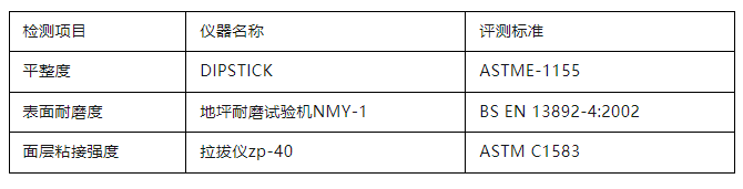參評(píng)項(xiàng)目包括混凝土面層地坪、水泥砂漿面層地坪、整體樹脂地坪系統(tǒng)三大類(下分13種細(xì)分地坪)?!癢OCA 地坪獎(jiǎng)-亞洲賽區(qū)”(WOCA AWARDS)執(zhí)行國(guó)際先進(jìn)的檢測(cè)檢驗(yàn)標(biāo)準(zhǔn),對(duì)候選項(xiàng)目進(jìn)行現(xiàn)場(chǎng)性能檢測(cè),依據(jù)三個(gè)維度——平整度(FF/FL Testing)、表面耐磨度(BCA Abrasion Testing)、面層粘接強(qiáng)度(Pull-off Adhesion Testing)的測(cè)評(píng)數(shù)值加權(quán)系數(shù)后得出最終分?jǐn)?shù)進(jìn)行評(píng)選。