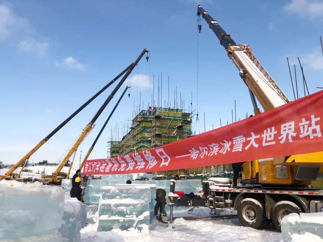 第21屆哈爾濱冰雪大世界建設(shè)現(xiàn)場,XCT25、QY25K5-1、QY70k-1在內(nèi)的50多臺徐工起重設(shè)備將無數(shù)個(gè)“量重面滑”、重達(dá)一噸的冰塊無縫堆砌。