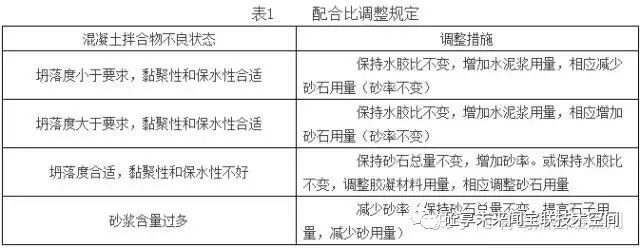 實(shí)際生產(chǎn)過(guò)程中,可根據(jù)需要調(diào)整混凝土配合比,但調(diào)整時(shí)要求: