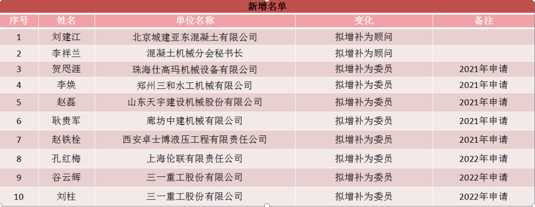 2022年4月29日經(jīng)混凝土機械分會理事會決議,團標委員增補10人,變更2人,取消2人。委員人數(shù)由31人調(diào)整至39人。