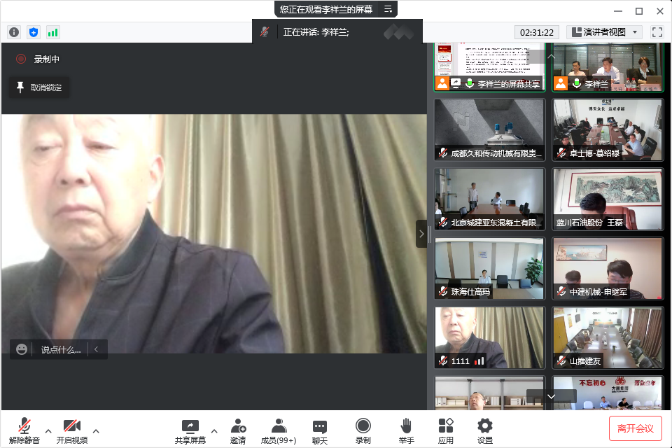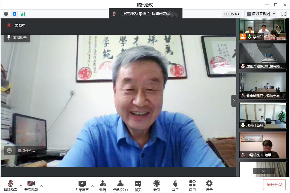 混凝土機械分會的年會還得到很多行業(yè)老前輩,專家、高工、行業(yè)精英的關(guān)注和支持,在自由交流環(huán)節(jié),中國工程機械工業(yè)協(xié)會名譽會長祁俊祁會長也發(fā)言祝賀,首先祝賀大會線上會議開的非常成功,他呼吁現(xiàn)在中國混凝土機械在全世界已占主導地位,站在領(lǐng)跑位置,肯定了行業(yè)的領(lǐng)先性,但由于各種因素的疊加,行業(yè)也到了最困難的時候,協(xié)會要增加上下游的互動,爭取支持,抱團取暖,希望混凝土機械在工程機械整個領(lǐng)域大家共同進步,相互幫扶渡過難關(guān)。