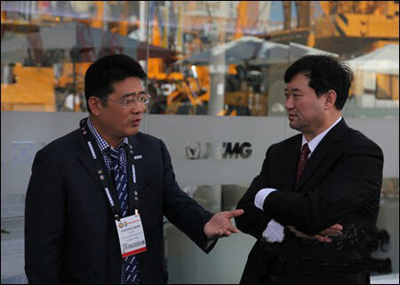 開展當天,中國工程機械工業(yè)協(xié)會副會長兼秘書長蘇子孟蒞臨徐工集團展位,參觀了徐工集團展出的全系列工程機械產(chǎn)品。參觀期間,蘇子孟秘書長與徐工機械副總裁、進出口公司董事長王巖松,就中國企業(yè)海外市場拓展、中國工程機械行業(yè)未來發(fā)展方向等問題進行了深入交流。