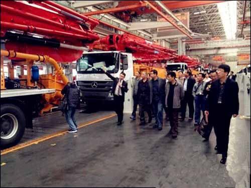 25日上午,考察團(tuán)全體成員在三一重工一號會議室召開了2014年度山東省混凝土協(xié)會會長工作會議,三一重工泵送營銷公司副總經(jīng)理王暾先生致歡迎詞,會議對2014年全年工作進(jìn)行部署、攪拌站評優(yōu)等問題展開討論。12點(diǎn)40分,考察團(tuán)參觀了三一產(chǎn)業(yè)園,一進(jìn)廠區(qū),一排排鮮紅锃亮的混凝土泵車像是巨人般列隊(duì)歡迎,亞洲最大的花園式18號廠房、一塵不染的總裝車間、豐富多彩的企業(yè)文化、振奮人心的發(fā)展前景,讓考察團(tuán)領(lǐng)導(dǎo)班子頻頻點(diǎn)贊,感嘆三一不愧為世界級工程機(jī)械制造商,充分肯定了三一重工在混凝土行業(yè)中的龍頭地位。參觀后,考察團(tuán)集體合影留念。
