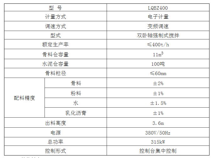 該設(shè)備整體采用模塊式結(jié)構(gòu),主要由骨料配料系統(tǒng)、集料皮帶機(jī)、二級(jí)攪拌系統(tǒng)、粉料系統(tǒng)、乳化瀝青供給系統(tǒng)、供水系統(tǒng)、電氣控制系統(tǒng)及氣路系統(tǒng)等部分組成。