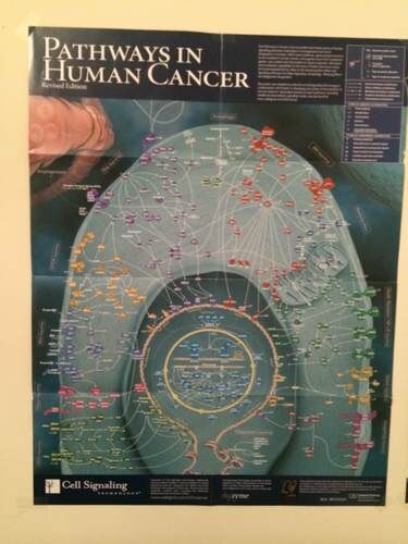 這是我老婆貼在家里的一張海報(bào),里面的每一個(gè)箭頭、每一根線都是好幾篇或者好幾十篇論文,很多都是 CNS,甚至有一些是諾貝爾獎(jiǎng)得主的成果。這是一個(gè)很直觀的科學(xué)的圖形化表述,一門(mén)科學(xué)就是由這些千千萬(wàn)萬(wàn)的點(diǎn)點(diǎn)滴滴組成的。