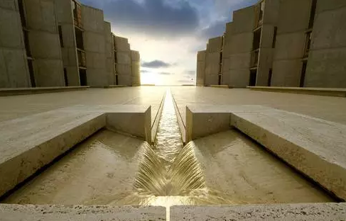 路易斯·康設(shè)計(jì)的加利福尼亞索爾克研究所,是一件大師級(jí)的作品。這里既是“具有學(xué)術(shù)氛圍的隱居之所”,也是科學(xué)研究的靈感之地。混凝土的澆筑,利用了從羅馬建筑研究汲取的技術(shù)。為了充分體現(xiàn)混凝土材料的特色,建筑師在材料設(shè)計(jì)完成后沒(méi)有再做任何的裝飾。