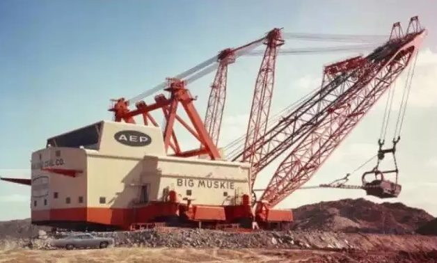 BIG MUSKIE官方編號為BE-4250W,是迄今最大的步進式拉鏟,1967年B-E開始為美國的一個露天煤礦建造它,直至1969年5月建成并投入使用,當(dāng)時的制造費用為2500萬美元,專門用于土石剝離。它有22層樓高,用13800V高壓電驅(qū)動,僅空鏟斗的重量就有209噸;1991年Big Muskie因礦區(qū)采空而停止運行,1999年爆破拆解,僅鏟斗留存下來。有卡車對比圖哦~