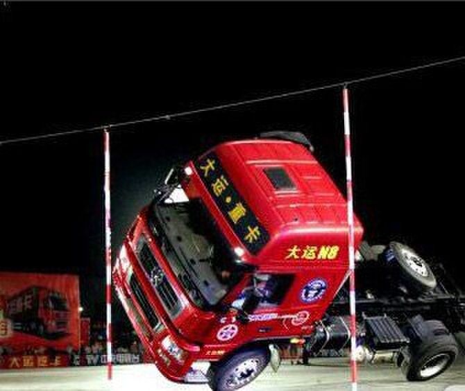 在2013年2月11日,特技車手張華曾駕駛大運(yùn)重卡挑戰(zhàn)“卡車漂移入位最短距離”的吉尼斯世界紀(jì)錄,并以90cm的距離成功創(chuàng)造了新紀(jì)錄。