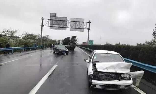 沒(méi)想到,隨后而來(lái)的一輛水泥攪拌車,經(jīng)過(guò)事發(fā)路段,也因?yàn)榈缆窛窕?,視線不佳,來(lái)不及避讓事故車輛,駕駛員猛打方向,直接撞上了邊護(hù)欄,巨大的沖擊力讓水泥攪拌車直接來(lái)了個(gè)近180度的大轉(zhuǎn)彎,逆向停在了兩條行車道之間,車輛前臉和駕駛室受損嚴(yán)重,所幸駕駛員只是受了輕傷。由于事故車輛將兩條行車道全部占據(jù),一時(shí)間二廣高速車輛出現(xiàn)滯留。