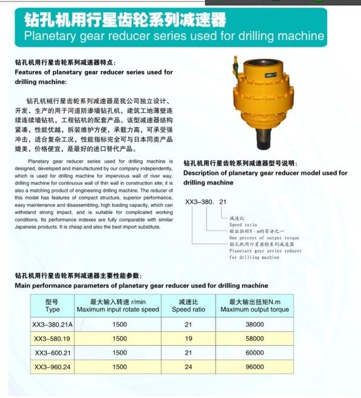 歸屬行業(yè):XX系列鉆孔機用行星齒輪減速器