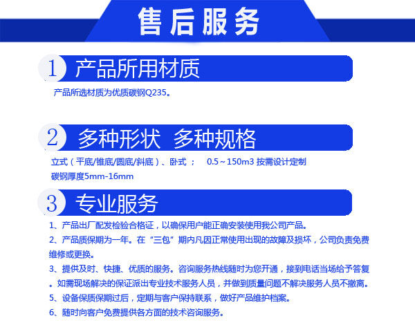 我們公司并可根據(jù)客戶要求制作來(lái)圖來(lái)料加工防腐儲(chǔ)罐。工程質(zhì)量達(dá)到經(jīng)濟(jì)、合理、可靠、可信和優(yōu)良的標(biāo)準(zhǔn)。讓您滿意是我們的追求。為您服務(wù)是我們的職責(zé)?!百|(zhì)量是企業(yè)生存的命脈 ;信譽(yù)是廠家發(fā)展的階梯?!?讓利客戶、規(guī)格生產(chǎn)、成本降低、統(tǒng)一銷售。歡迎廣大客戶來(lái)函、來(lái)電、來(lái)樣咨詢訂購(gòu),讓您買的放心用得安心,與您攜手共創(chuàng)輝煌。