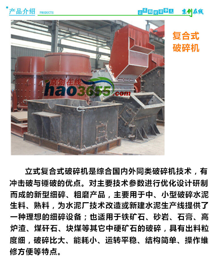 復(fù)合式破碎機(jī)800簡(jiǎn)稱為復(fù)合破,是破碎生產(chǎn)線和制砂生產(chǎn)線中常用設(shè)備之一。復(fù)合破碎機(jī)是一種無篩條、可調(diào)式細(xì)碎設(shè)備,可廣泛適用于水泥廠的生料、熟料細(xì)碎作業(yè),同時(shí)也可用于白云石、焦寶石、鉛鋅礦、蛇紋石、高爐渣、煤矸石、磷礦石等中等硬度物料的細(xì)碎作業(yè),特別適用于硬質(zhì)石灰?guī)r、白云巖、花崗巖、玄武巖等人工造砂或高速公路路面石料的加工破碎。