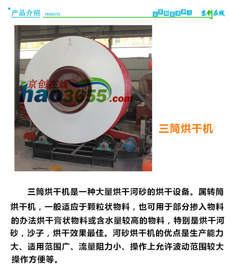 YHS6210三筒烘干機(jī)YHS6210在濕物料烘干設(shè)備系列產(chǎn)品中,回轉(zhuǎn)式三筒烘干機(jī)是在單筒回轉(zhuǎn)式烘干機(jī)基礎(chǔ)上改進(jìn)的高效節(jié)能產(chǎn)品。經(jīng)多家企業(yè)、多個行業(yè)的應(yīng)用,取得了良好的效果?;剞D(zhuǎn)式三筒烘干機(jī)改進(jìn)了單筒原單筒烘干機(jī)內(nèi)部結(jié)構(gòu),增加入機(jī)前濕料的予烘干和延長濕料在機(jī)內(nèi)烘干時間,再加上密封、保濕以及合理的配套措施,使烘干機(jī)生產(chǎn)能力與原單筒式烘干機(jī)相比,提高50-80%,單位容積蒸發(fā)強(qiáng)度可達(dá)120-180kg/m3,標(biāo)準(zhǔn)煤耗僅為6-8kg/t。其技術(shù)先進(jìn)、運(yùn)行參數(shù)合理,操作簡單可行?!翱坪銠C(jī)械”制造的三筒烘干機(jī)筒體體內(nèi)根據(jù)用戶需求不同,內(nèi)部可以設(shè)計配備使用耐高溫材料隔溫,在進(jìn)料端為防止倒料設(shè)有門圈及螺旋抄板。具有結(jié)構(gòu)合理,制作精良,產(chǎn)量高,能耗低,運(yùn)轉(zhuǎn)方便等優(yōu)點。另外我公司的研發(fā)部門經(jīng)過多年的不懈努力,可將鍋爐尾氣做為三筒烘干機(jī)的供熱熱源,成功推出利用鍋爐廢氣烘干機(jī)。是供熱無投資,用熱無成本。真節(jié)能干燥,真正節(jié)能環(huán)保??捎糜?/span>廣泛應(yīng)用于各個行業(yè)的礦渣、粘土、煤、鐵粉、礦粉及其它混合材,建筑業(yè)的干混砂漿,黃砂等以及化工、鑄造等行業(yè)原材料烘干。