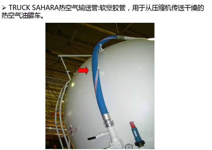 應(yīng)用范圍: 軟壁膠管,用于從壓縮機(jī)傳送干燥的熱空氣到罐車(chē)