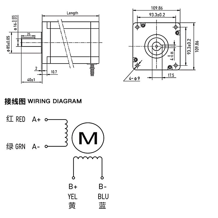 兩相1.8°混合式步進(jìn)電機(jī)110系列步進(jìn)電機(jī)