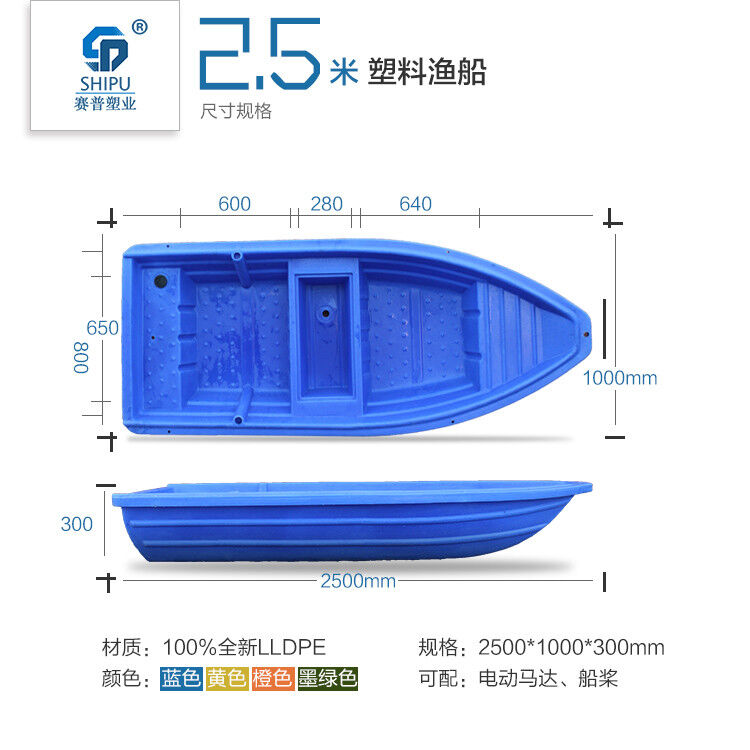 重慶賽普塑料捕魚船采用進(jìn)口韓國LLDPE材質(zhì),采用國外先進(jìn)的滾塑工藝整體加工制成。一次成型,無縫焊接。,成本低,穩(wěn)定性強(qiáng),抗撞擊,耐老化,無需維修。效果遠(yuǎn)超玻璃鋼漁船。使用年限長達(dá)30年以上,是新一代的漁船。欲購從速!13650528299(微信同號)