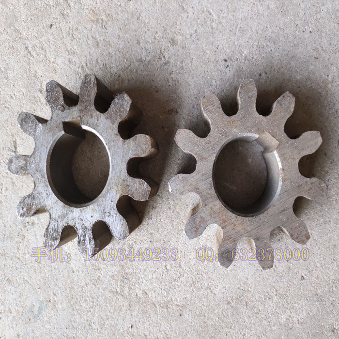 小型齒圈傳動(dòng)攪拌機(jī)10齒11齒齒輪 圓罐滾筒攪拌機(jī)齒輪。10齒齒輪內(nèi)孔37mm,11齒齒輪內(nèi)孔41mm。滾筒攪拌機(jī),攪拌機(jī)的一種,是自落式雙錐反轉(zhuǎn)出料,攪拌筒由齒圈傳動(dòng),工作時(shí)正轉(zhuǎn)攪拌,反轉(zhuǎn)出料,可攪拌塑性和半干硬性混凝土,適用于一般建筑工地,道路,橋梁工程及各種混凝土構(gòu)件廠.手機(jī):15093449233  QQ:632378000
