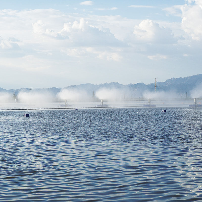 并且占地面積小、投資成本低。還有一種是風(fēng)送式蒸發(fā)器、風(fēng)送式蒸發(fā)器是把蒸發(fā)設(shè)備架在岸邊、利用高速旋轉(zhuǎn)的風(fēng)機(jī)把水破碎噴灑在天空中進(jìn)行蒸發(fā),這種和漂浮式蒸發(fā)器效果類似