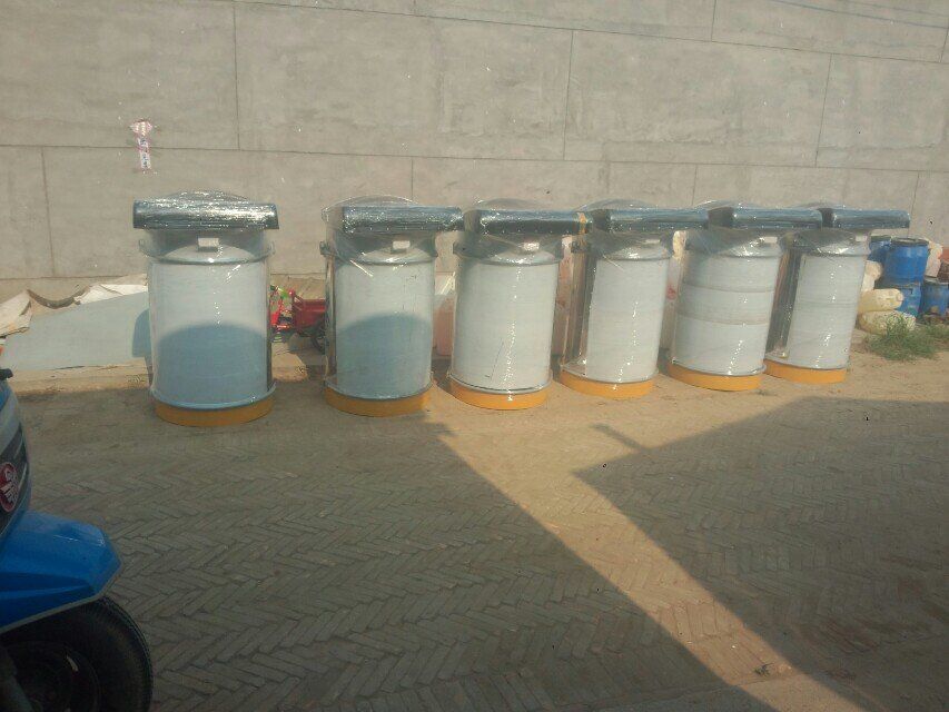 單機(jī) 屬于機(jī)械抖動(dòng)除塵器,其基本結(jié)構(gòu)由風(fēng)機(jī)、過(guò)濾器和集塵器三個(gè)部分組成,各部件都安裝在一個(gè)立式框架內(nèi),鋼板殼體,烘漆防銹,運(yùn)行可靠,使用方便。風(fēng)機(jī)采用離心風(fēng)機(jī),風(fēng)量大,風(fēng)壓高,并采用消聲措施,噪音小。過(guò)濾器采用扁布袋組,每個(gè)布袋內(nèi)裝有彈簧鋼絲網(wǎng),過(guò)濾效果好。清灰機(jī)構(gòu)采用電動(dòng)機(jī)帶動(dòng)偏心輪、連桿使布袋抖動(dòng)而   沾在濾袋表面的粉塵。此除塵器設(shè)有檢修門(mén),方便檢修和換袋。