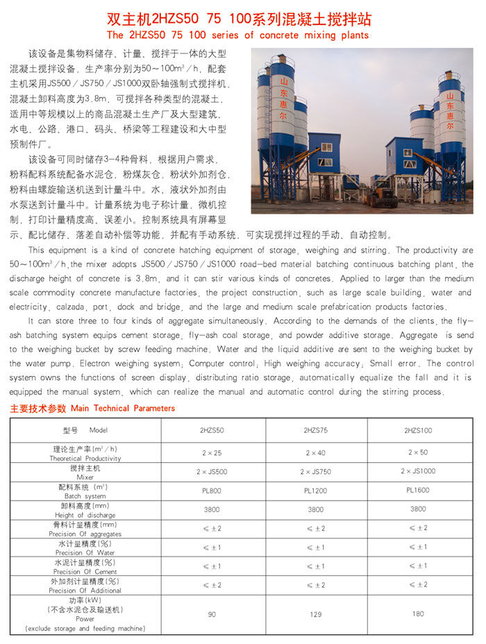 歸屬行業(yè):雙主機(jī)2HZS100混凝土攪拌站