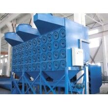 在正常運(yùn)行時,如:重力、慣性力、碰撞、靜電吸附,篩濾作用等。含塵空氣由頂部入口進(jìn)入濾筒式除塵器,較大的粉塵顆粒因截面積增大,風(fēng)速下降而提高直接沉降,較小的煙塵粉塵顆粒通過濾筒。粉塵被捕集在過濾筒外邊,清潔空氣則經(jīng)由濾筒中心進(jìn)入清潔空氣室,再經(jīng)出口由引風(fēng)機(jī)排出。隨著過濾不斷進(jìn)行,濾筒表面的煙塵粉塵越積越多,阻力不斷升高,及至濾筒清灰時,固態(tài)控制將操縱電磁閥以打開一個空氣隔膜閥,于是高壓空氣便直接沖入所選濾筒中心,把捕集在濾件表面上的粉塵吹掃一清,使濾筒再生。粉塵則隨主氣流所趨,并在重力的作用下向下落入塵斗中。周而復(fù)始,連續(xù)過濾,使設(shè)備連續(xù)進(jìn)行得到保障。