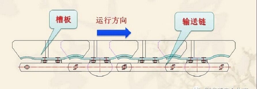 由:1、槽板2、鏈節(jié)等件組成,槽板為雙圓弧搭接式,采用低合金鋼板組焊而成,強(qiáng)度高,耐磨損不漏料。