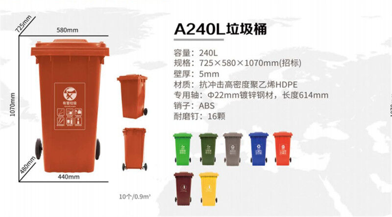 塑料分類垃圾桶經(jīng)久耐用,輕巧靈活,外型美觀,利于環(huán)保,置負(fù)載后輪,可跨越梯級或路邊臺階,內(nèi)外表面光潔,便于倒空垃圾與清洗,用于各類公共場所收集廢棄物或原料搬運(yùn),大大提高工作效率,計(jì)符合人體工程學(xué)。2 特點(diǎn)用優(yōu)質(zhì) 工程材料制造輕便耐用,移動靈活。種色彩,適用于不同的環(huán)境與垃圾分類收集。