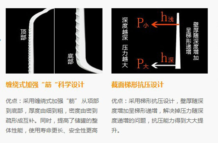 1)產(chǎn)品采用韓國(guó)進(jìn)口高質(zhì)量LLDPE作為產(chǎn)品生產(chǎn)原材料,生產(chǎn)出來(lái)的pe儲(chǔ)罐具有無(wú)毒、無(wú)味、耐酸、耐堿、耐沖擊、耐高溫、耐寒、不易老化等優(yōu)點(diǎn)。