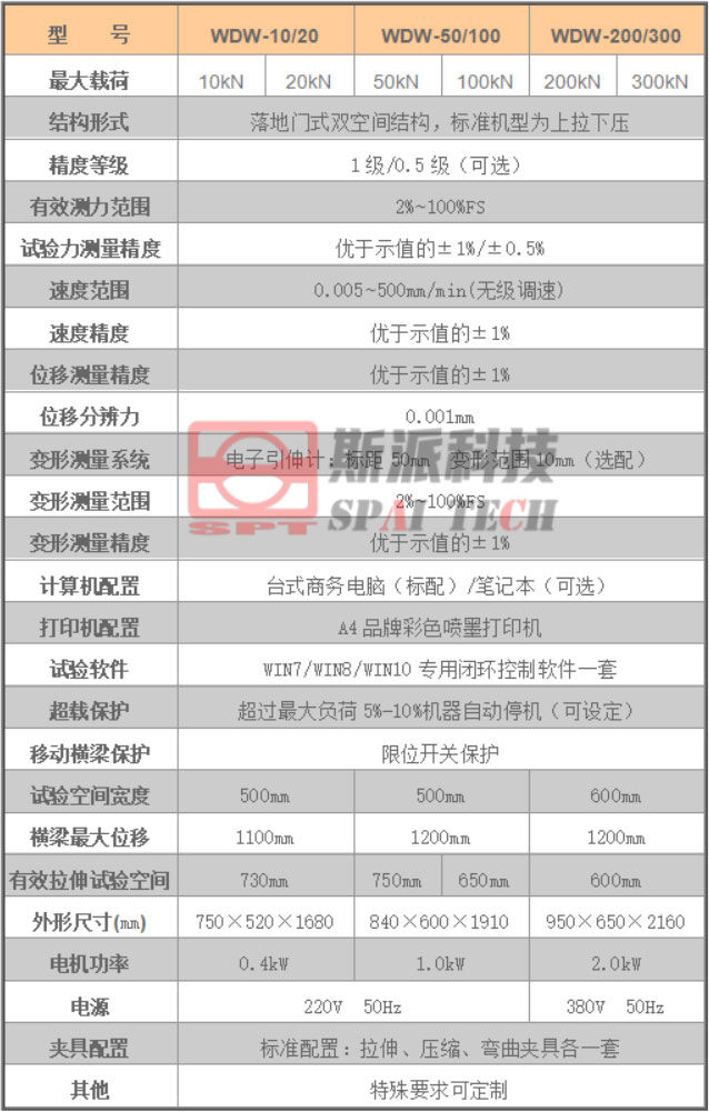WDW系列大門式微機(jī)控制電子萬能材料試驗(yàn)機(jī)采用穩(wěn)定的門式主機(jī)結(jié)構(gòu),選用日本松下(Panasonic)伺服調(diào)速系統(tǒng)、精密設(shè)計(jì)同步減速系統(tǒng)、臺灣上銀(HIWIN)/銀泰(PMI)滾珠絲杠、美國傳力(Trancell)/世銓(Celtron)力傳感器等主要部件,主要應(yīng)用于金屬、非金屬材料及制品的拉伸、壓縮、彎曲等力學(xué)性能試驗(yàn),具有結(jié)構(gòu)簡單、穩(wěn)定可靠、外形美觀等特點(diǎn),深受廣大用戶的歡迎。
