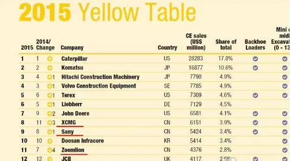 2015年全球工程機(jī)械制造商50強(qiáng)排行榜中國(guó)企業(yè)榜單